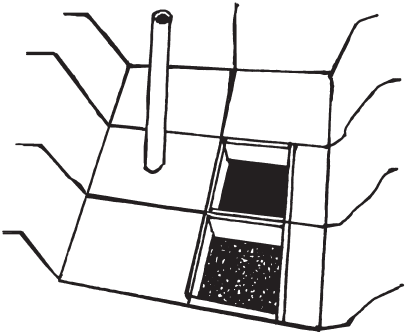 В перекрытии септика нужно оставить отверстия для двух труб. Одну из них вывести на высоту от 2 м от поверхности земли для вентиляции, можно использовать трубу любого диаметра из асбоцемента, но лучше взять трубу ПВХ. В крайнем случае допустимо сколотить для вентиляции короб из дюймовых досок, которые изнутри пропитать отработанным моторным маслом. В трубе для откачки внизу на расстоянии 10–15 см от нижнего конца необходимо сделать отверстие диаметром около 1 см для своевременного прекращения откачки и исключения засасывания грунта. Вторая труба понадобится для предстоящей в будущем откачки ила – ее диаметр должен равняться 10 см. Снаружи трубы можно окрасить в тон общего оформления двора, закрыть декоративным колпаком или закамуфлировать другим способом.