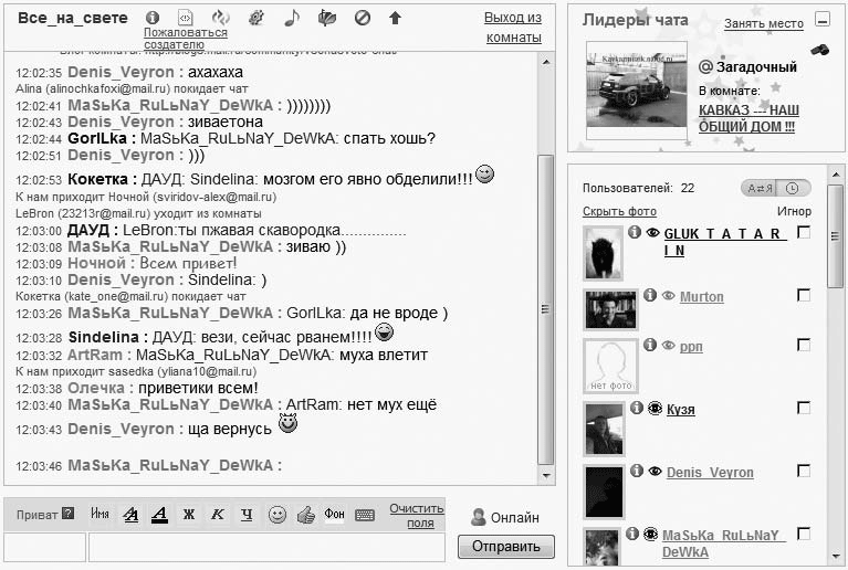 В этом уроке мы рассмотрим два способа потрындеть: чаты и форумы. Что такое чат? Вот что я нашла в словарях «Яндекса»: «Чат (от англ. to chat – болтать).