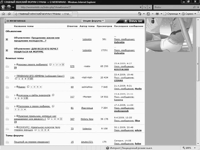 Например, форум может выглядеть так (рис. 16.11). Это форум сайта eva.ru.