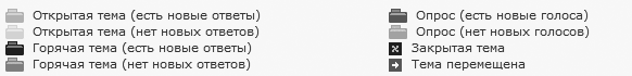 Слева от названия тем есть значки, которые показывают важность той или иной темы. В разных форумах они различаются, но смысл у них одинаковый: