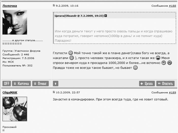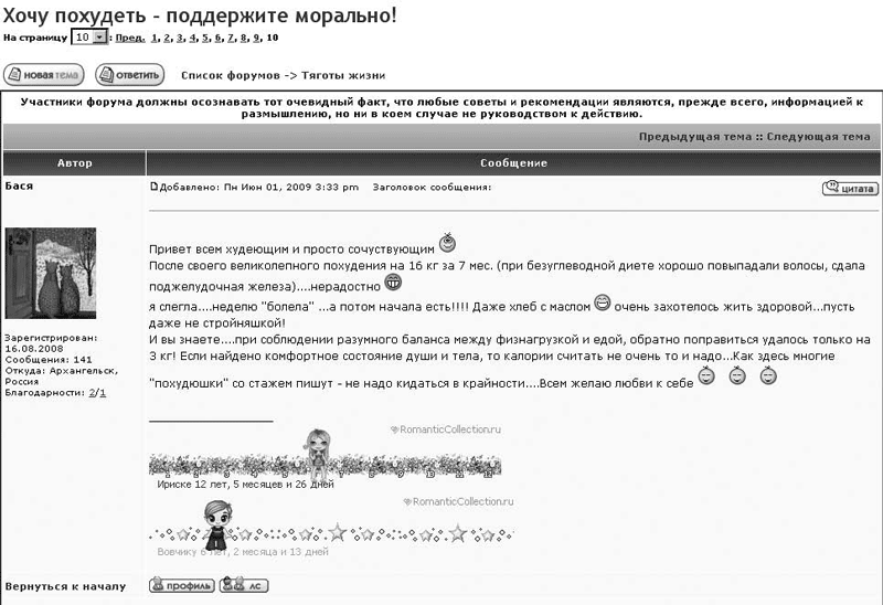 Теперь давайте посмотрим на отдельно взятое сообщение (на рис. 16.9, правда, их два). Почти на всех форумах сообщение выглядит так.