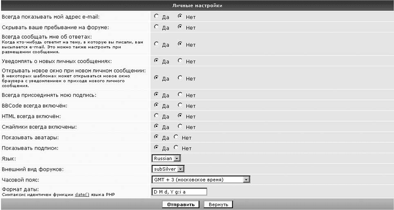 • BBCode всегда включён. Да. И ничего не трогаем.