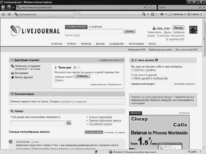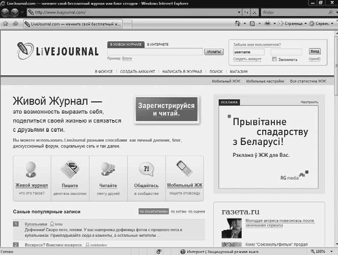 Рис. 17.1. Главная страница сайта LiveJournal.com