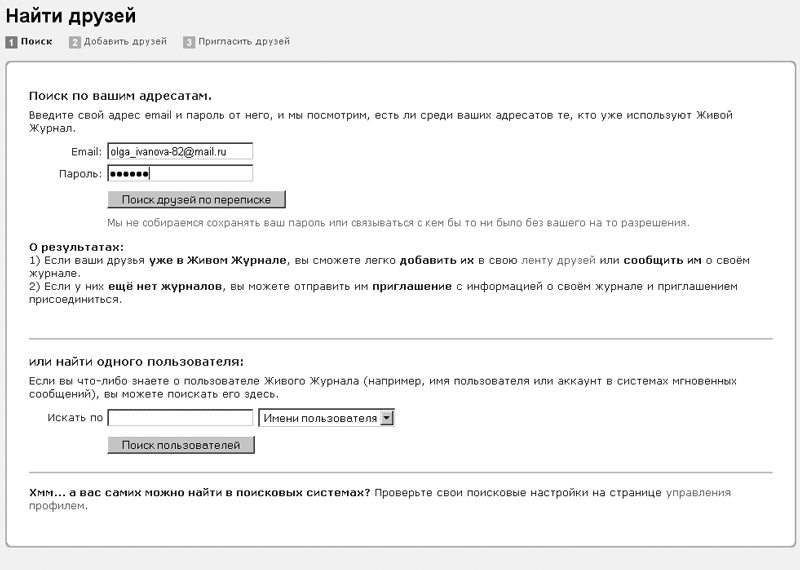 Если вы знаете ник подруги или друга в ЖЖ, то введите его в поле Искать по имени пользователя (см. рис. 17.6). Найдете очень быстро.
