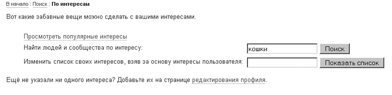Сайт выдал мне большой список сообществ и пользователей, у кого в интересах стоит слово Кошки. Теперь понимаете, почему нужно заполнять свой профиль полностью? Гляньте, что вы указали в своем профиле в графе Интересы. Именно по этим интересам вас могут найти единомышленники. Теперь, найдя сообщество, которое мне понравилось, я могу принять участие в сообществе или просто следить за его публикациями (рис. 17.19).