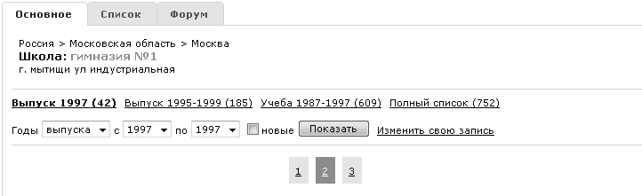• тех, кто учился в школе одновременно с вами, но в других классах (Учеба 1987–1997 – 609 человек);