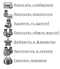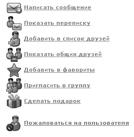 Если вы не сомневаетесь в том, что рады видеть этого человека, идите сразу к нему на страничку. Там вы найдете вот такое меню (рис. 18.5).