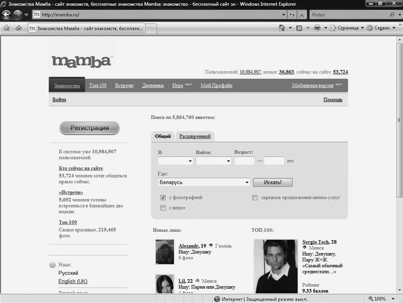 Рис. 19.1. Сайт знакомств mamba.ru
