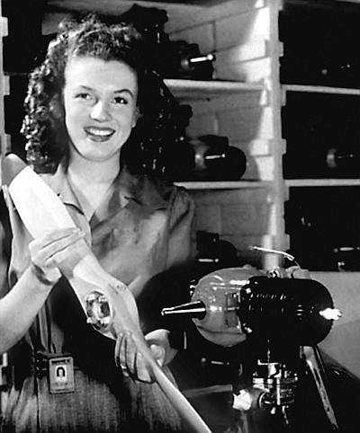 Норма Джин Дахерти, 26 июня 1945 г. Знаменитая фотосессия у заводского станка, решившая ее судьбу