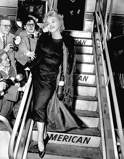 Мэрилин Монро на трапе самолета «American Airlines», 1956 г.