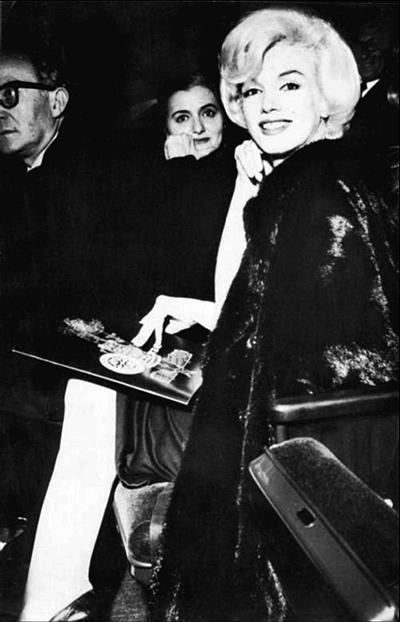Мэрилин Монро, Израиль и Паула Страсберг на спектакле «Макбет», февраль, 1962 г.