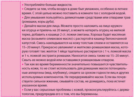Будьте особенно внимательной при выборе кремов, лосьонов, тоников, масок во время беременности. Желательно обратиться к врачу-косметологу, чтобы он подобрал для вас безопасное средство. Лучше использовать средства для ухода за кожей, разработанные специально для беременных.