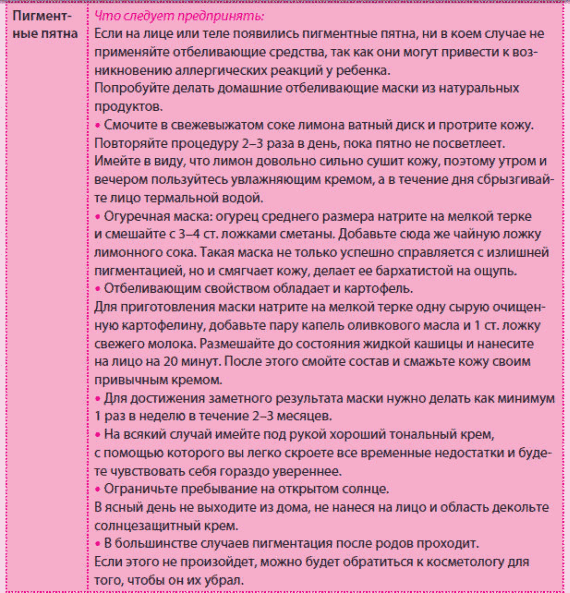 Нельзя использовать инъекционные методики (мезотерапия, ботокс, рестилайн и др.). Перманентный макияж, татуаж могут вызвать реакцию на само вещество и стресс от боли. Придется отказаться и от лазерной шлифовки кожи, так как данная процедура проводится под наркозом, а это вам сейчас явно ни к чему. Серьезные вмешательства возможны только через полгода с момента родов. Должны быть исключены любые процедуры, связанные с сильным перегревом тела в конце первого триместра, так как есть риск нарушений развития нервной системы плода. Поэтому при посещении солярия в данный период обратите внимание не только на индивидуальное отключение ламп для лица, но и на систему охлаждения в нем (убедитесь, что вентиляторы исправны). УФ-излучение не является источником тератогенной опасности, но отключать лампы для лица нужно для профилактики «маски беременности».Декоративная косметика Полностью отказываться от декоративной косметики не обязательно. Важно только выполнять простые правила: По возможности используйте небольшое количество косметики. Если у вас когда-нибудь была аллергия на ту или иную пудру, тени, тушь – не употребляйте их. Сейчас не время для экспериментов. Избегайте окрашивания ресниц и бровей химическими красками.
