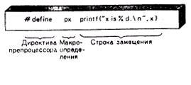 т. е. слово TWO заменилось цифрой 2. Затем оператор РХ; превращается в printf("X равно %d. \n", х); поскольку сделана полная замена. Это новшество, так как до сих пор мы использовали макроопределения только для представления констант. Теперь же мы видим, что макроопределение может представлять любую строку, даже целое выражение на языке Си. Заметим, однако, что это константная строка; РХ напечатает только переменную, названную x.