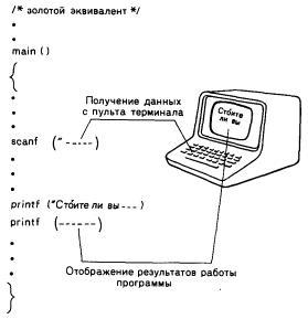 4. Возможно, самой существенной новой особенностью является то, что эта программа "диалоговая". Компьютер запрашивает у вас информацию, а затем использует число, которое вы ввели. Работать с диалоговой программой гораздо интереснее, чем с программами недиалогового типа, которые мы использовали до этого. Более важным является еще и то, что такой подход позволяет нам создавать более гибкие программы. Например, нашу программу можно использовать при задании любого веса (конечно, в разумных пределах), а не только веса в 175 фунтов. Нам не нужно переписывать программу всякий раз, когда мы захотим обработать вес еще одного человека. Функции scanf и printf делают это вполне возможным. Функция scanf читает данные, набираемые на пульте дисплея, и вводит их в программу. В гл. 2 мы уже видели, что функция printf читает данные из программы и выводит их на экран. Вместе эти две функции позволяют установить двустороннюю связь с вашей программой, что делает общение с компьютером гораздо более приятным.