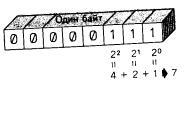 Например, число 7 в двоичном виде выглядит как 111. Поэтому, чтобы поместить это число в 1-байт слово, необходимо первые 5 бит установить в 0, а последние 3 бит - в 1 (рис. 3.2).
