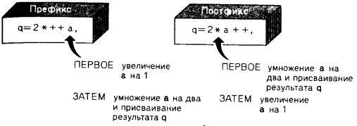 В тех случаях, когда одна из этих операций увеличения используется сама по себе, как, например, в операторе ego++, не имеет значения, какой формой вы пользуетесь. Выбор приобретает смысл, когда операция, и ее операнд являются частью некоторого "высшего" выражения, как, например, в операторах присваивания, которые мы только что рассматривали. В подобной ситуации необходимо иметь представление о результате, который вам хотелось бы получить. Напомним, например, следующий оператор: