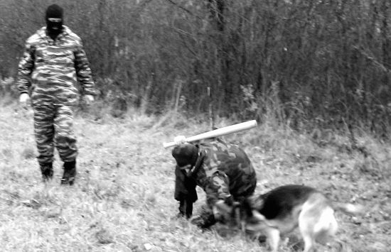 В армии и полиции существует упражнение, которое называется «Подавление собакой огневой точки противника». Суть его такова: пса ориентируют на ведущего огонь врага, находящегося на расстоянии нескольких сот метров в укрытии или на открытой местности, делают пуск и… все — можно забыть о собаке, но и о вражеском снайпере тоже можно забыть однозначно, он будет выведен из строя надолго, если не навсегда! Как вам такая работа с собаками? Кстати, мы ее подробно рассмотрим в разделе, посвященном специальной подготовке.