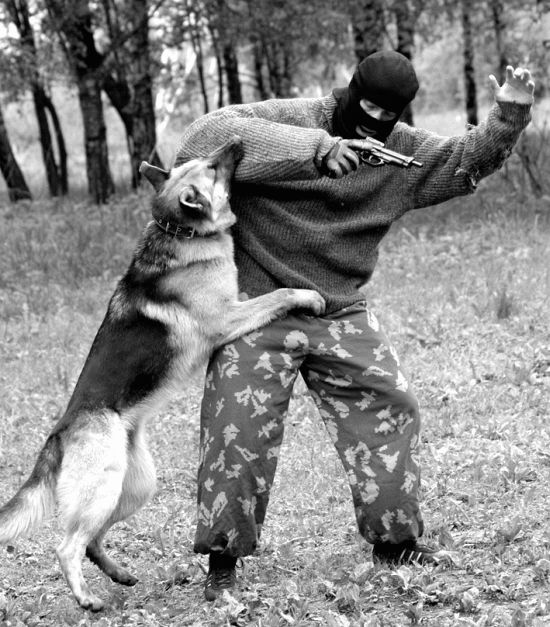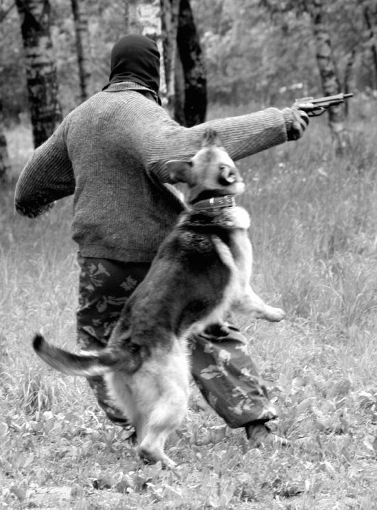 Каким образом можно заставить вашего питомца не щадя себя бросаться на вашу защиту? Животное, в отличие от человека, не знает, что такое чувство долга и ответственности, всякие альтруистические мотивы у него отсутствуют. Собаке дают понять, что любое агрессивное действие в вашу сторону, исходящее от злоумышленника, будет причинять ей боль.