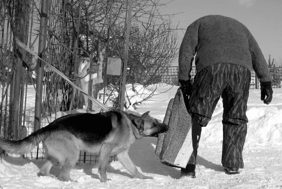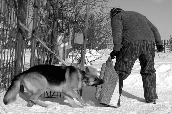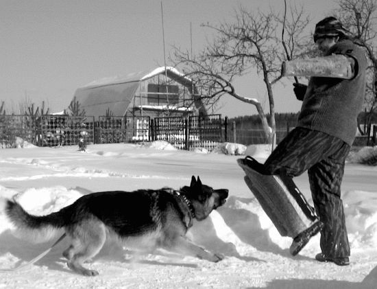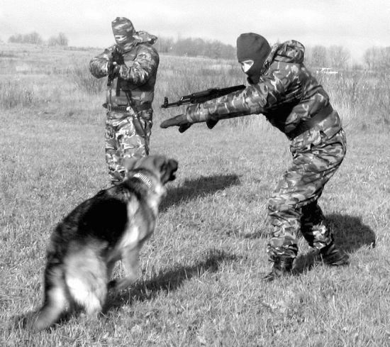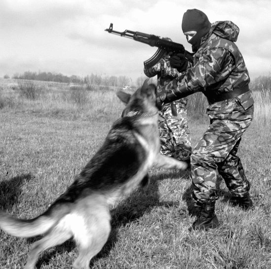 В боевой обстановке враг с прокушенной рукой теоретически может оказать сопротивление с помощью второй, но, думаю, вряд ли найдется много мастеров рукопашного боя, способных вести поединок с прокушенными ногами. Опять же, все должно быть в меру. Для разностороннего развития боевых навыков у собаки специального назначения ее надо учить дифференцированно подходить к угрозе со стороны нападающего. Наличие в руках у агрессора холодного или огнестрельного оружия должно служить сигналом к атаке именно в вооруженную конечность. Бытующее мнение о том, что боевая собака должна работать в ближнюю точку, будь то нога, рука, лицо, можно оспорить, и весьма аргументированно. Но если вашего четвероногого воина подготавливают именно так, то вы — счастливый человек. Ведь вам удалось найти думающего тренера, не боящегося рисковать. Пусть он ведет по своему пути, главное — чтобы ваш пес не был зациклен на какую-то отдельно взятую часть тела. Теперь перейдем к самой методике.