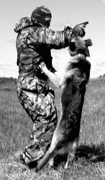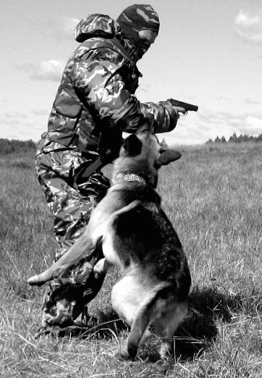 Конкретных методик, которые смогли бы полностью подготовить собаку к такого рода ситуациям, нет. Унифицировать любую угрозу не представляется возможным. В каждом отдельно взятом случае варианты контрдействий должны прорабатываться индивидуально. Для этого нужно взять несколько отправных точек, которые помогут нам создать общий вид предстоящей угрозы. Если это покушение на жизнь и здоровье, то вариант противодействия один. Если захват заложника — другой. Человек, собирающийся использовать собаку в качестве телохранителя, должен ясно и четко определить степень той или иной угрозы, чтобы можно было расставить акценты в подготовке животного.