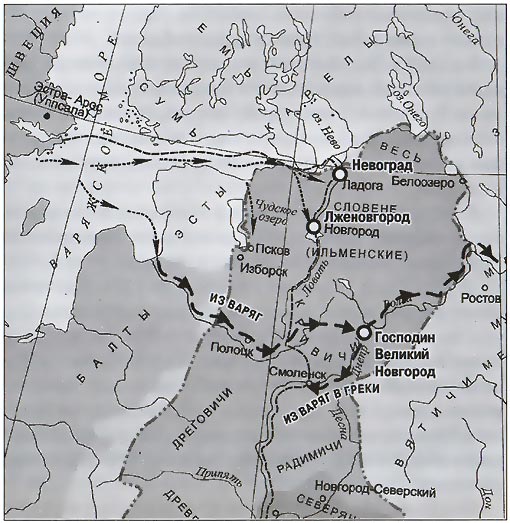 Из вышеизложенного следует, что в начале десятого века Новгород — единственный город, не обкладываемый данью в пользу великого князя. В связи с чем у Новгорода такие привилегии? Если сопоставить с тем, что первейшей задачей было обеспечение свободы внешней торговли, то вполне можно предположить, что Новгород играл в этом какую-то важную, а возможно, ключевую роль. Логично будет посмотреть на это с точки зрения расположения караванных торговых путей.