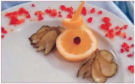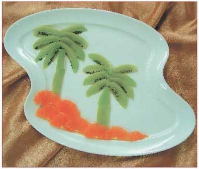 2. Нарезаем тонкие дольки и укладываем на блюдо в виде пальмы