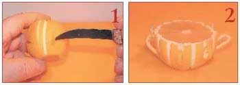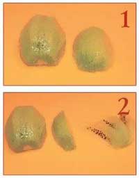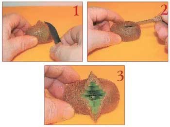 4. На кожице прорезаем угол, отделяем угол и упираем его в мякоть
