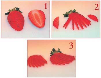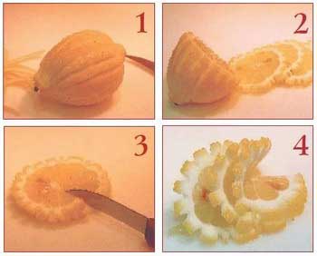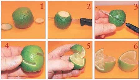 1. Отрезаем дольку, с одной стороны срезаем часть и подрезаем кожицу