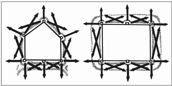 Схема организации стрельбы (фронтальной и фланкирующей) в «регулярных» крепостях XV—XVI вв.