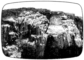 Чем ближе к птичьим базарам, тем отчетливее резкие голоса. Птиц мы увидели сверху. И они нас заметили, но беспокойства не проявили. Удобно размещаемся на скале, в бинокли наблюдаем за жизнью базара.