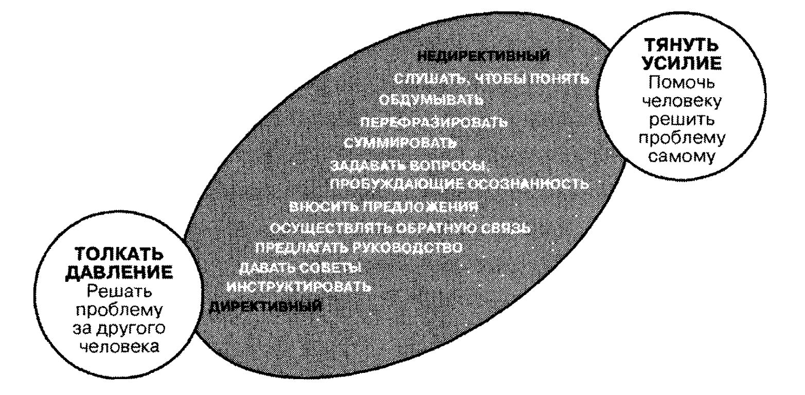 Несмотря на то что я пылко отстаиваю свое мнение об ограниченности директивного подхода, важно понять, что директивная методика также может быть использована коучем. Бывают случаи, когда коуч действительно знает ответ, а игрок топчется на одном месте, или ему действительно требуется обратная связь либо совет. В таких случаях для того, чтобы помочь, нет смысла отказываться от обратной связи или совета. Но подлинная магия все же находится в недирективной части спектра.