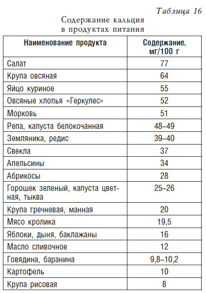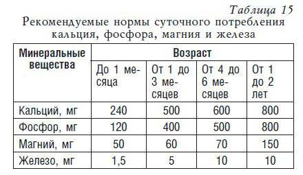 В табл. 15–19 приведены данные о нормах потребления кальция, фосфора, магния и железа, а также их содержание в продуктах питания.