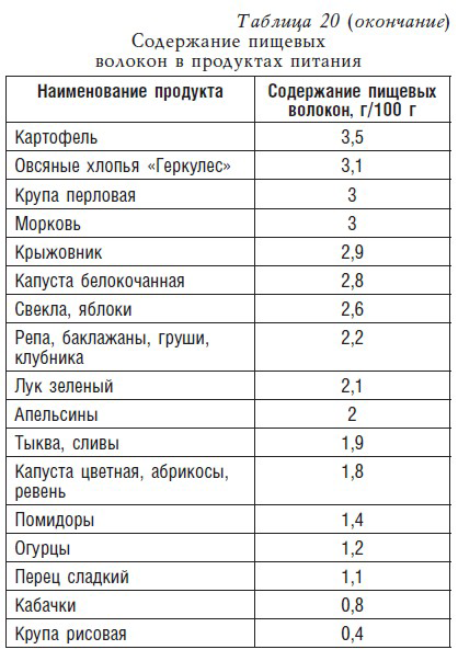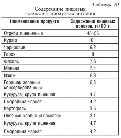 Основными поставщиками этих веществ являются овощи, ягоды и крупы: белокочанная капуста, свекла, морковь, яблоки, черная смородина, малина, пшенная, перловая и овсяная крупы, горох, фасоль и чечевица (табл. 20).