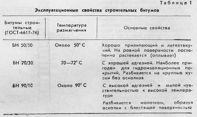 Физико-механические свойства строительных битумов приведены и табл. 1.