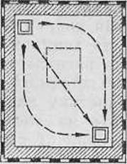 Отверстие вытяжной трубы размещают вверху, под самым потолком, а приточной – внизу, на высоте 50–60 см от пола (рис. 27). Применение большого числа вытяжных труб малого сечепля нежелательно, особенно в северных районах.