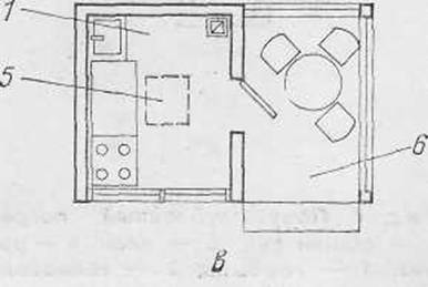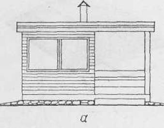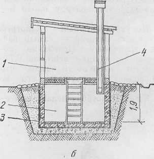 Летняя кухия с погребом. Погреба, вырытые под хозяйственными постройками, в частности под летней кухней, удобны в эксплуатации, не занимают места на участке и могут иметь вход (люк) нз помещения кухни (рис. 6).