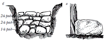 Ряды бутовой кладки необходимо устраивать одинаковыми по высоте и с соблюдением перевязки швов (рис. 14). Причем некоторые камни могут занимать 2 или 1,5 ряда по высоте, а некоторые – меньше.