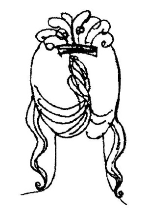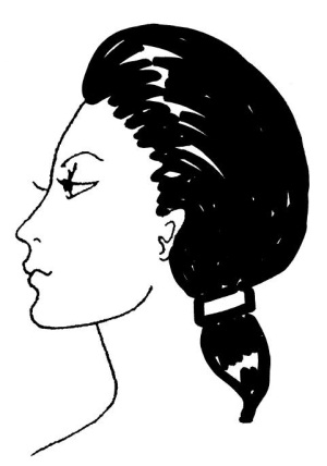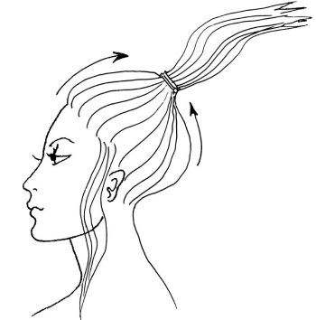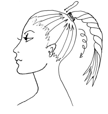 Прическу делают так. Все волосы собирают назад, как для конского хвоста, перекручивают против часовой стрелки до плотного скручивания волос. Перекрученные волосы оборачивают вдоль затылка и вокруг пальца в жгут, подтыкают концы волос в шов и придают ракушке желаемую форму и закрепляют ее шпильками не туго, но надежно.