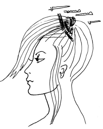 Если у вас волосы длинные, и тем более – если они слегка вьются (или у вас химическая завивка), завейте их, но не на привычные бигуди, а на шпильки. Можно воспользоваться и обычными, но лучше взять крупные пластмассовые. Если нет шпилек, возьмите упаковочный толстый картон, нарежьте из него прямоугольники (3 x 14, 4 x 7 или 5 x 12 см) и закрутите влажные волосы, обильно смоченные гелем, на эти импровизированные бигуди, концы закрепите резинками.