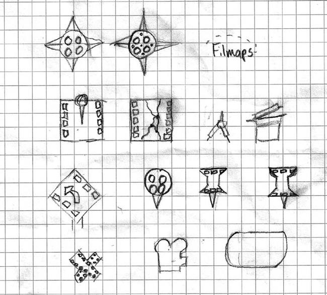 А этот логотип сделал канадский дизайнер Джозия Джост из Siah Design для Filmaps.com – сайта для тех, кто ищет, где сделать фильм. Цель была – создать образ, ясно говорящий об этом, и Джозия понимал, как важны предварительные наброски.