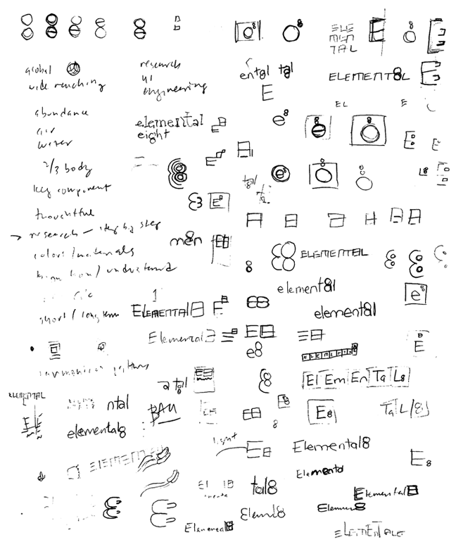 Вот этот логотип для студии промышленного дизайна Elemental 8 в Сан-Хосе Мартинес из studio1500 сделал за несколько минут.