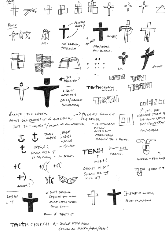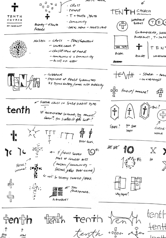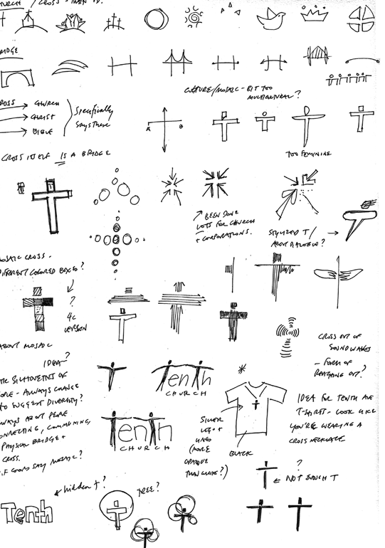 Дизайнер Нэнси Ву получила заказ на логотип для церкви «Община Десятой Авеню» в Ванкувере, Британская Колумбия, в обиходе известной как «Десятая церковь». Толковый результат получился вот из следующих набросков: