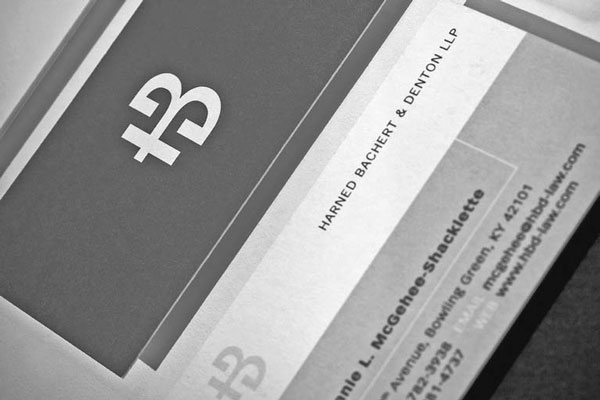 Служащие юридической фирмы Harned, Bachert & Denton (HBD) из Боулинг-Грин (штат Кентукки) почувствовали, что фирменный стиль компании не в состоянии удачно отобразить опыт, историю и уровень честности, которые фирма выстраивала почти двадцать лет. Они хотели логотип, который отличал бы их как профессиональное и прочное объединение порядочных адвокатов.