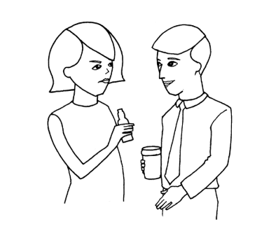 На этой иллюстрации показана негативная реакция женщины, на чью территорию вторгается мужчина. Женщина отклоняется назад, стараясь сохранить комфортное расстояние. В такой ситуации мужчине нужно отступить или попробовать иной прием.
