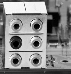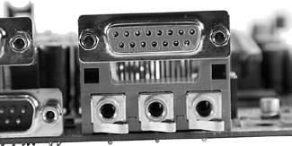 Рис. 5.19. Разъемы встроенной звуковой карты на внешней планке