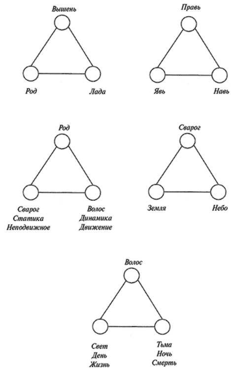 Велес/Волос, тоже принадлежащий к этому поколению, продолжил творение мира. Он привёл созданный Вышнем, Родом и Сварогом мир в движение: день стал сменяться ночью, стали вращаться времена года, Тьма стала сменяться Светом, за смертью следует новая жизнь.