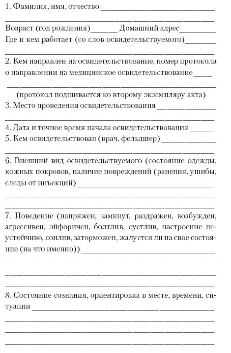 Помните, что факт употребления отличается от состояния опьянения. Состояние опьянения понимается как алкогольного, так и наркотического. Врач должен вас осмотреть, а не просто подмахнуть протокол, он обязан вписать свои имя, фамилию, должность. У доктора и учреждения должна иметься лицензия на право проводить освидетельствование. Он должен оценить вашу способность связно говорить, держать равновесие, поведение (в Акте аж 20 позиций, и оценка по каждой подробно расписана) и провести тест на алкоголь. Ваше имя должно быть вписано в прошнурованный журнал, а в Акт внесены результаты осмотра и теста.