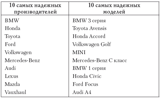 Дабы вы могли сами составить общее впечатление о качестве тех или иных машин, приведу рейтинг надежности машин, составленный специалистами клуба автолюбителей Германии ADAC. Цифры напротив каждой модели означают количество поломок на каждую тысячу автомобилей.Десятка самых надежных автомобилей (пятилетней давности)