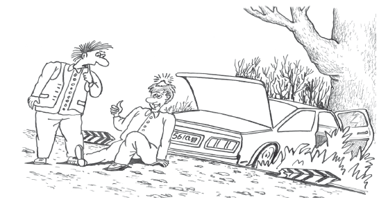 Собственно, при лобовом столкновении вообще нет шансов остаться в живых. Зато при отвороте в кусты есть некоторая надежда вообще не получить повреждений – только перепачкаться да проложить новую просеку. Поймаете грузовик, он вытащит вас «за хвост» обратно на дорогу, и поедете дальше, теперь уже наверняка никуда не торопясь.